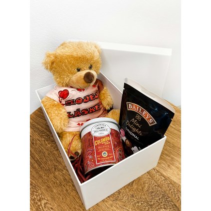 Romantický box plný nežnosti – šumivé víno, voňavé ruže, kúpeľové prekvapenia a sladké pokušenie pre ženu, ktorú milujete celým srdcom.