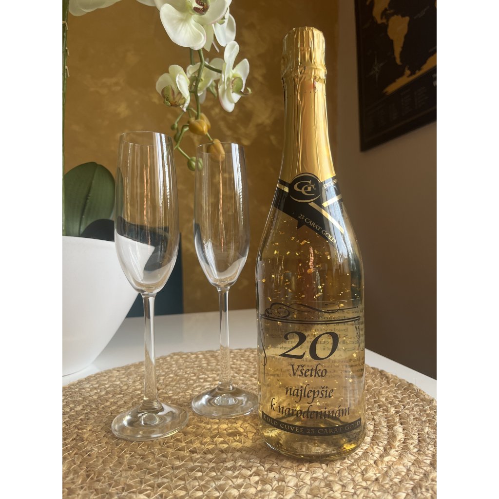 Gold Cuvee Biele šumivé víno s 23 karátovým jedlým zlatom – Darček k 20. narodeninám s venovaním