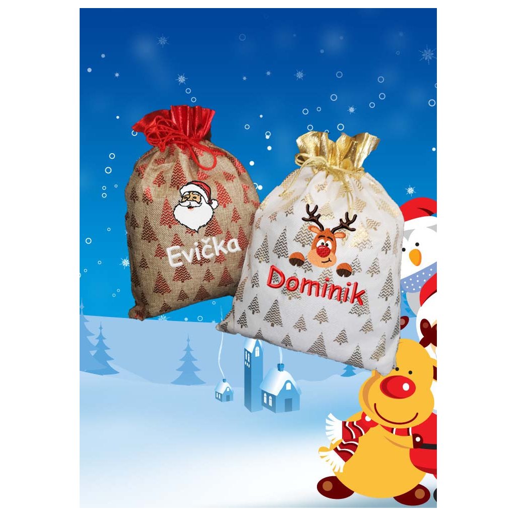 Mikulášske vrecko s výšikou mena je ideálna pre detičky na sviatok Mikuláša.