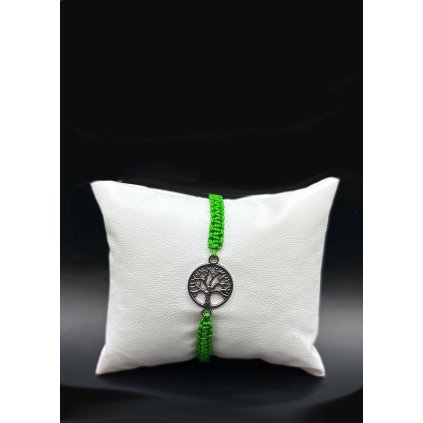 Ručne pletený náramok s motívom Stromu života v odtieni zelenej, ktorý v sebe spája jemnosť a symboliku.