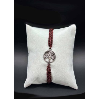 Ručne pletený náramok s motívom Stromu života v odtieni hnedej, ktorý v sebe spája jemnosť a symboliku.