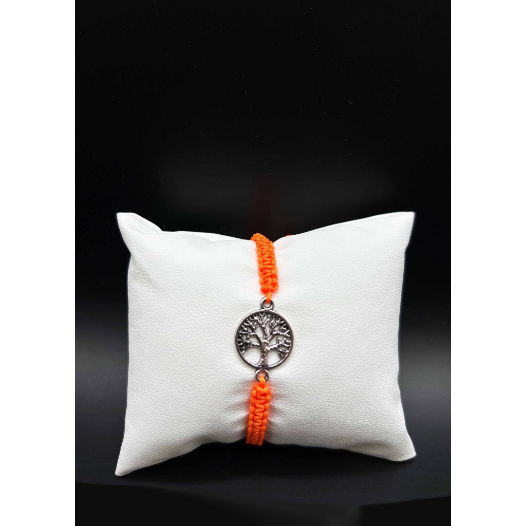 Ručne vyrábaný šnúrkový náramok so symbolom Stromu života v oranžovej farbe