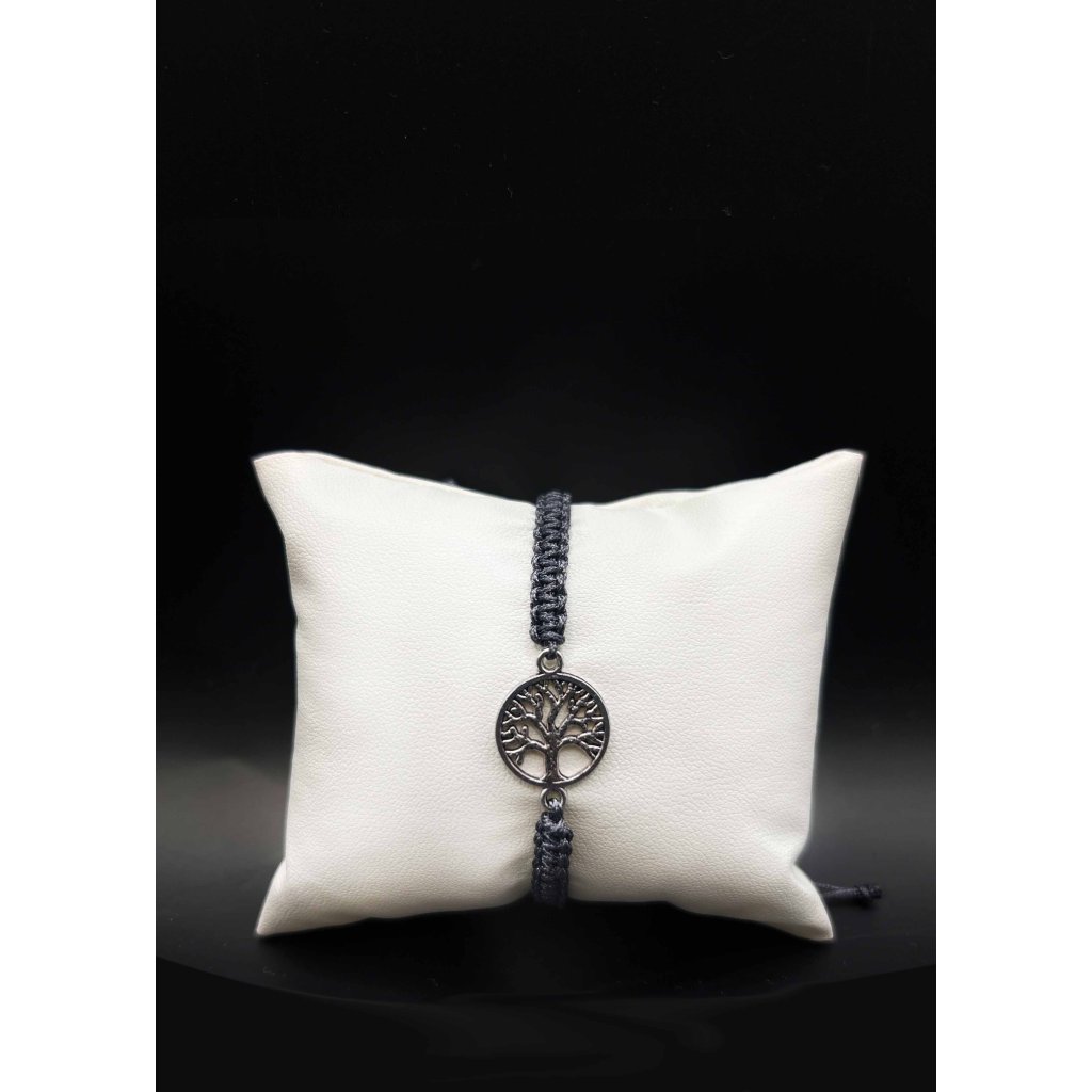 Ručne vyrábaný šnúrkový náramok so symbolom Stromu života v čiernej farbe