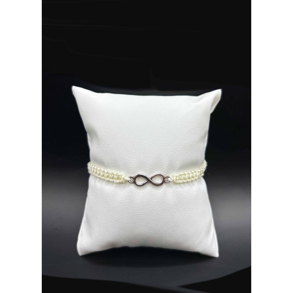 Ručne vyrábaný šnúrkový náramok so symbolom Nekonečno v béžovej farbe