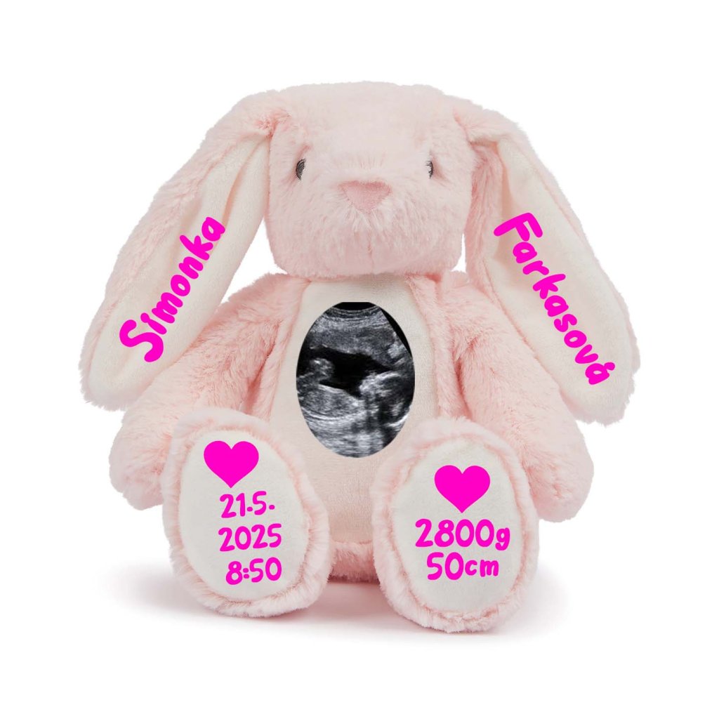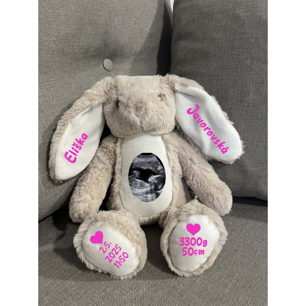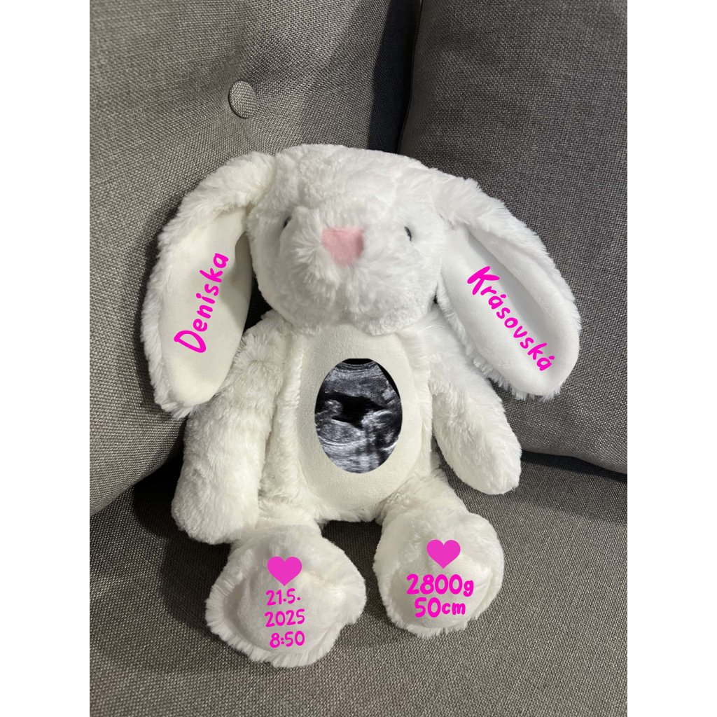 Plyšový zajačik s údajmi dieťatka a ultrazvukom