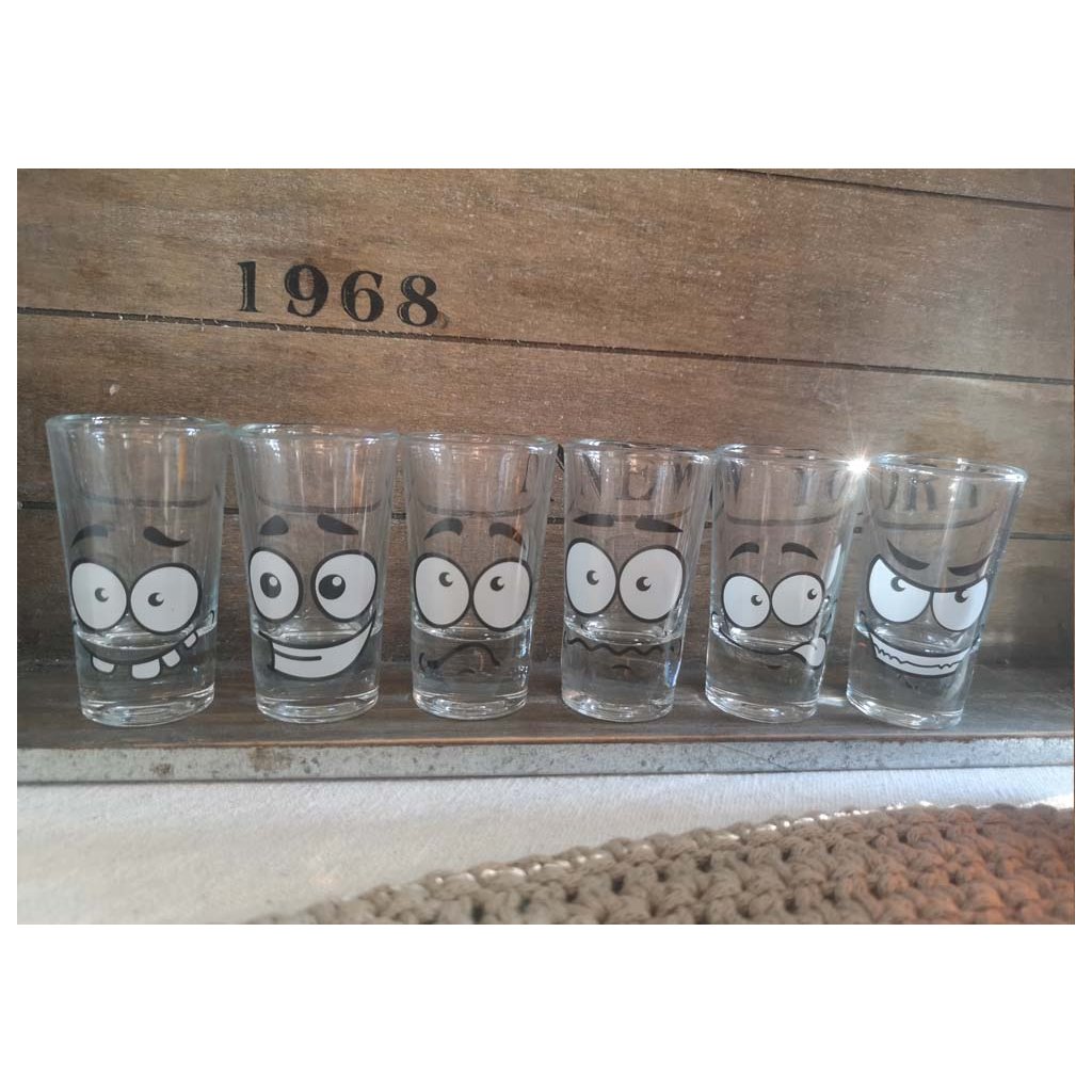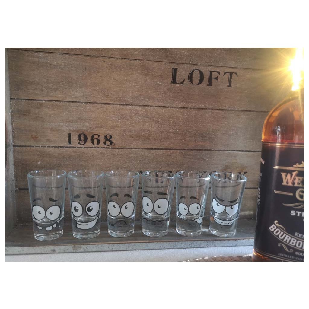 Štamperlíky sklenené s obrázkom smile. Set 6ks Objem 25ml