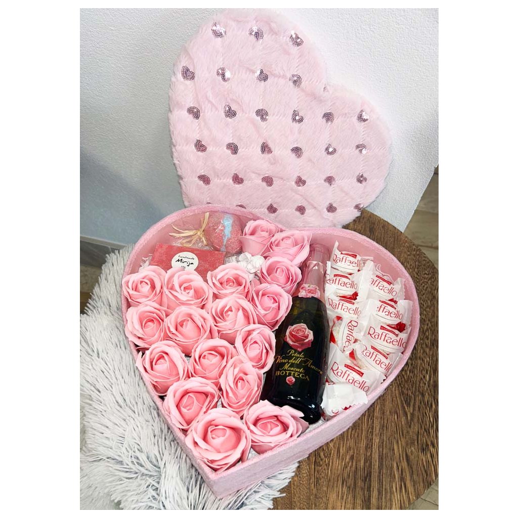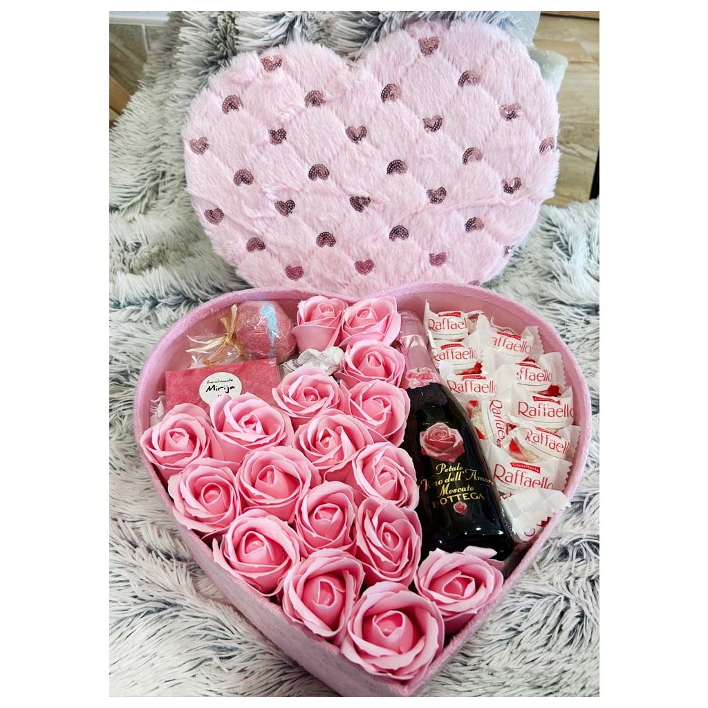 Veľký luxusný plyšový flower box v tvare srdca Exclusive Pinky